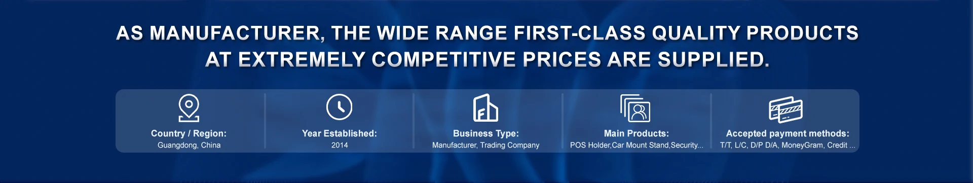 主な製品:POSホルダー、カーマウントスタンド、セキュリティタブレットマウント、ラップトップスタンド、ラップトップケーブルロック